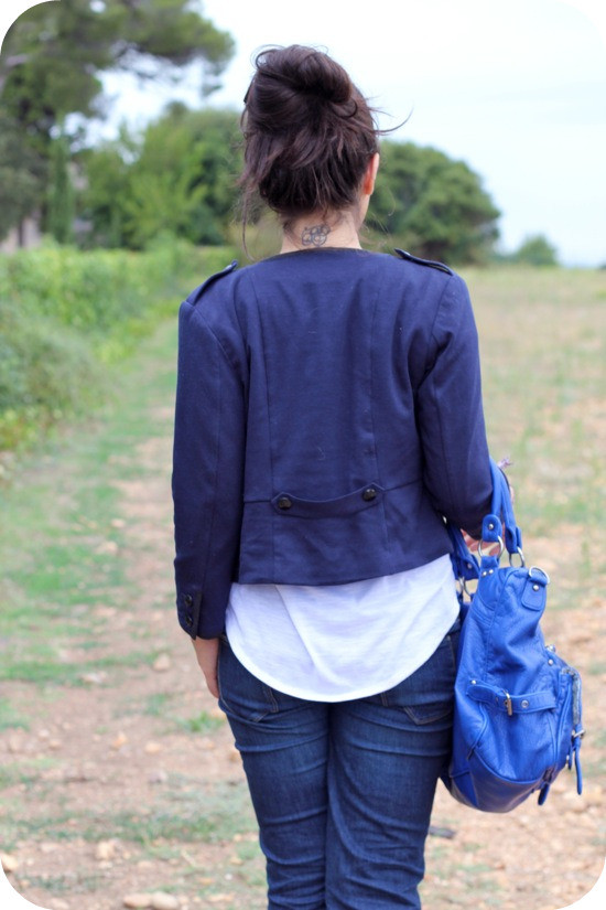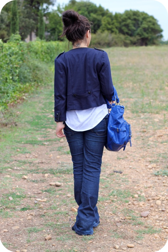 wouah ouh j’adore le bleu de ton sac, jolie tenue qui te va super bien!