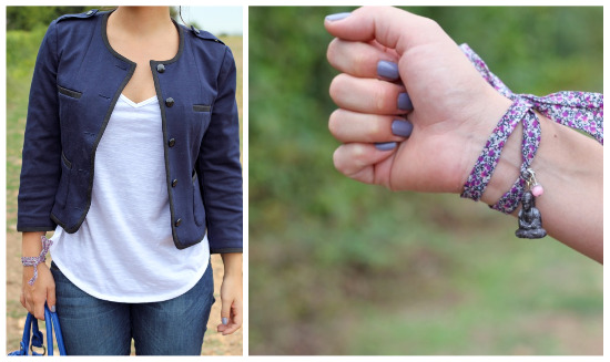 j’adore cette tenue, c’est ce que je porte chaque jour, un jean, des boots, un t-shirt, une jolie veste et des accessoires sympa 🙂 en parlant accessoire je vois un joli bracelet trouvé dans une boutique Dawanda héhé j’ai moi aussi ma tite boutique sur Dawanda : créations de bijoux gourmands, si tu as le temps d’aller y faire un tour 🙂