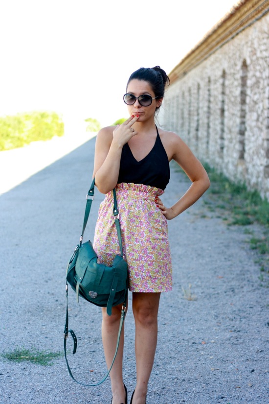 Je la porte donc de façon plutôt simple, avec une paire d’escarpins à nœuds, un dos nu noir, un cartable et pour pimenter le tout, une touche de vernis rouge.