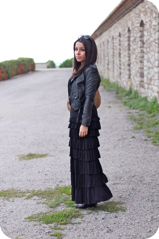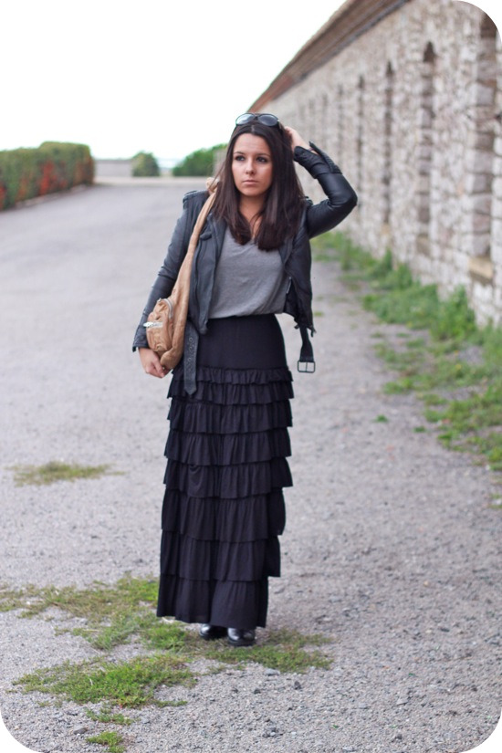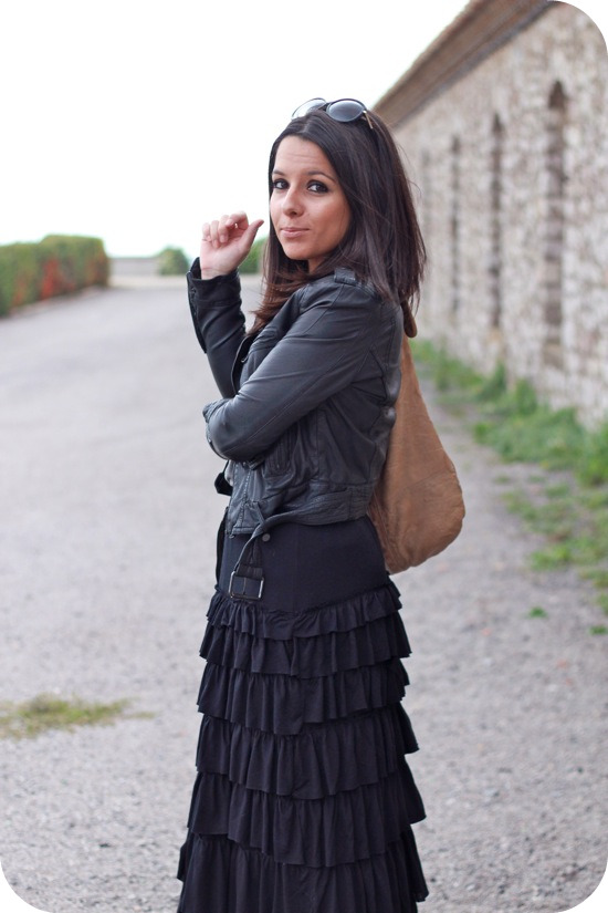 J’adore vraiment les jupes longues et tout ce qui va avec, mais cette tenue, je n’accroche pas du tout.. Les froufrous grossissent et je trouve que tu es tassée.