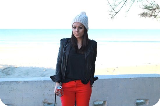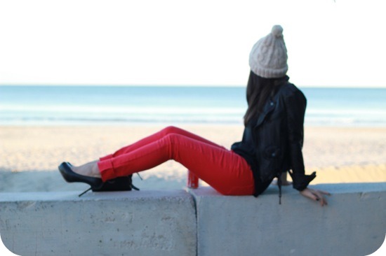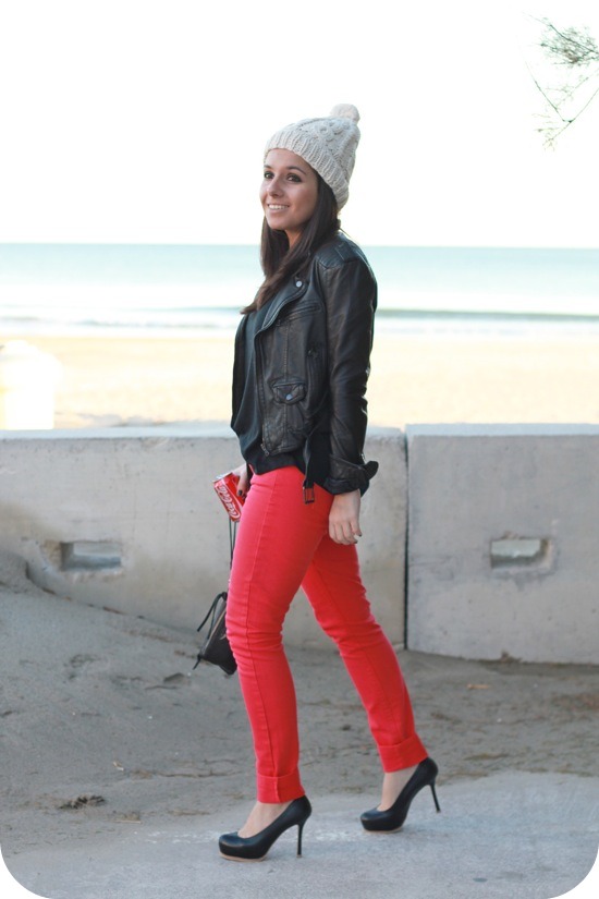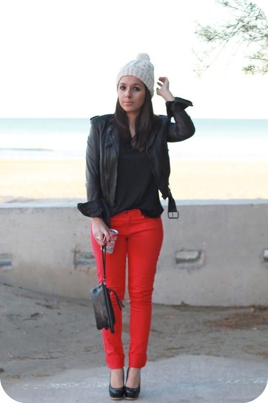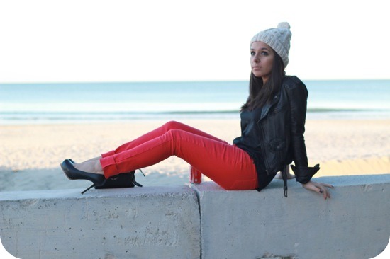 Ha j’adore ce look ! le skinny rouge je ne le trouve cool qu’avec des talons. En tout cas pour moi, sinon ça me rappelle mon époque ado rock’n roll avec des jeans rouges ! 🙂