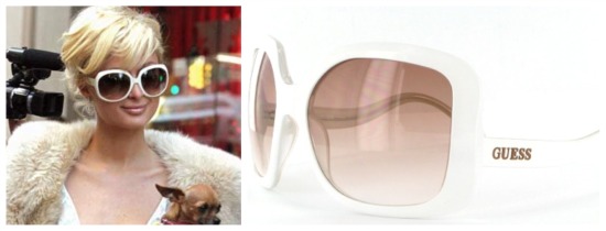 Paris Hilton fait dans l’originalité avec une paire de lunettes xxl de couleur blanche.