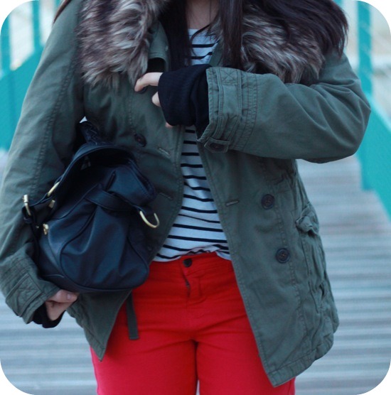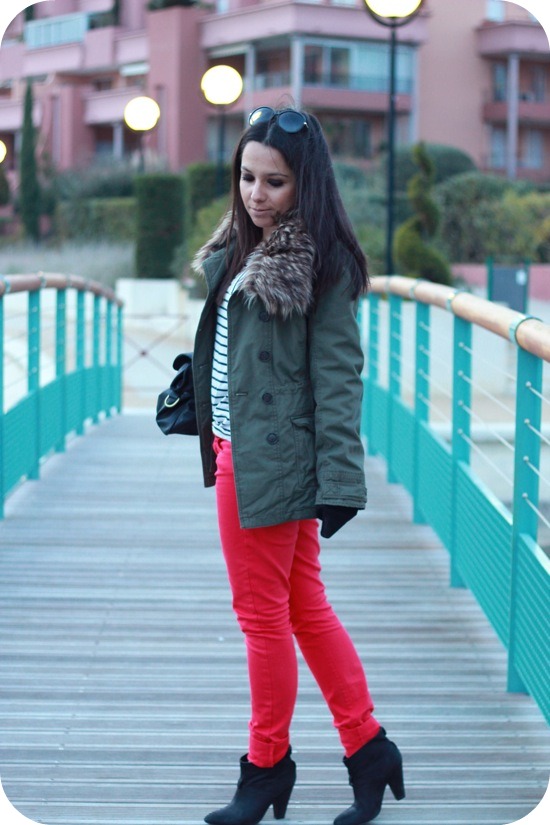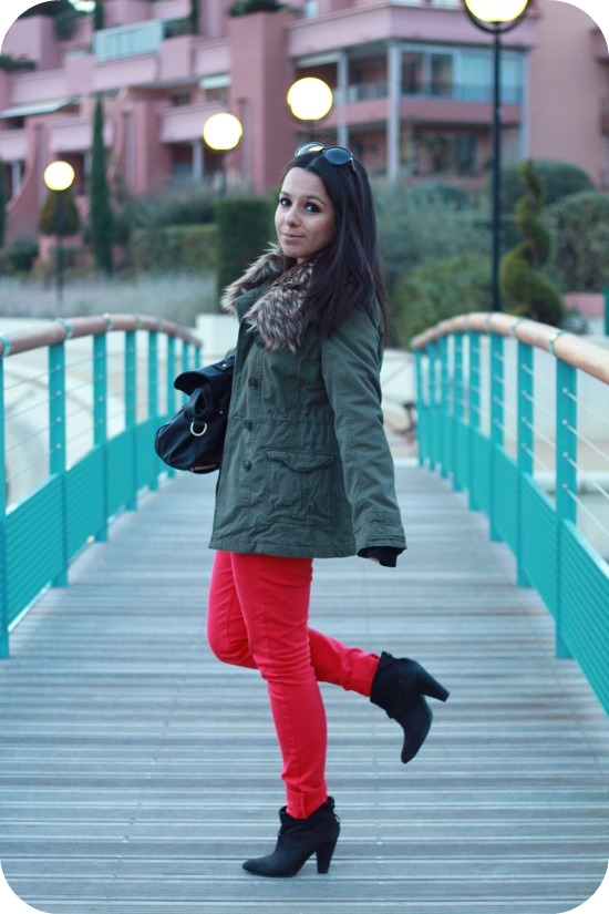 bien joué! perso j’ai toujours aimé le kaki, donc… avec le jeans rouge c’est juste parfait!