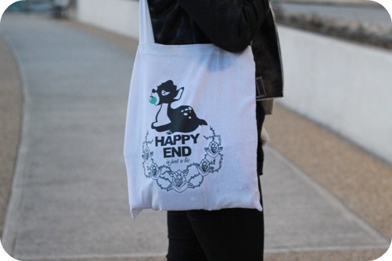 Bonne idée le sac blanc pour trancher avec tout ce noir 😉