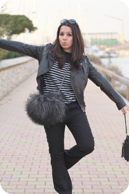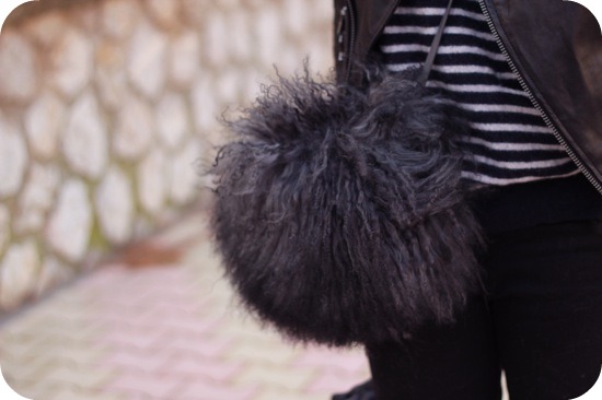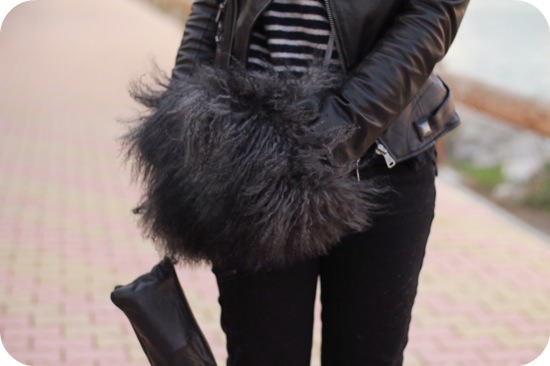 C’est vrai que ça fait petite boule de poils mais pour réchauffer ses mains, ça doit être tellement bien! En tout cas, ça ne me choque pas avec le reste de la tenue, j’aime bien.