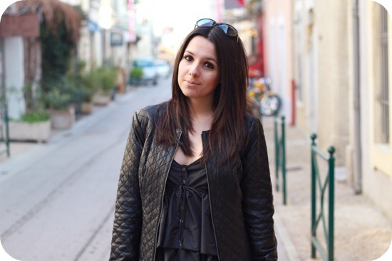 Yeaah! Super look total black, j’adhère à fooond là =) Et l’asssociation cape + perf’ c’est vraiment classe je trouve!