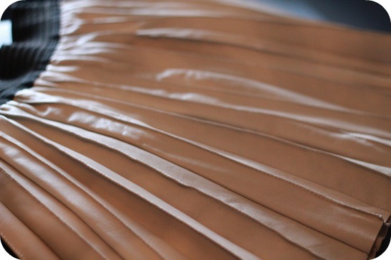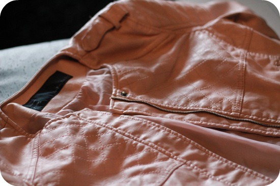 La jupe est superbe, et la petite veste en cuir m’a l’air toute aussi ravissante! de belles couleurs qui vont être parfaites pour le printemps: une petite touche de nude et de fraîcheur^^