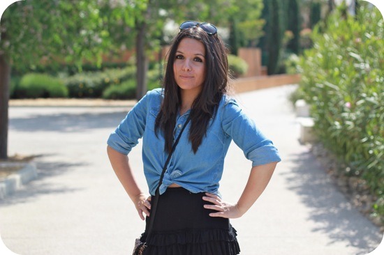 J’avais déjà craqué sur ton autre look où tu portais cette superbe jupe noire, mais l’association avec la chemise en jean nouée est encore plus WAOUH !! Bisous