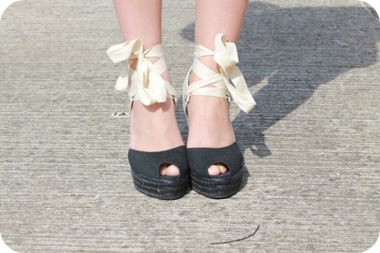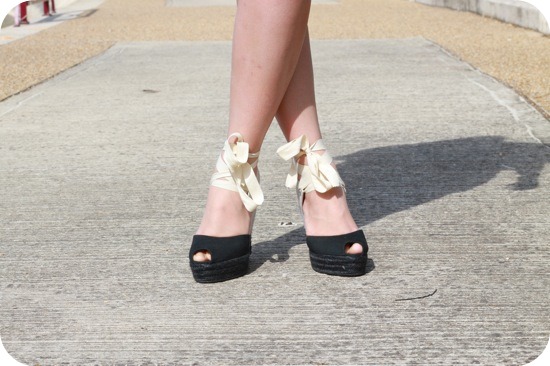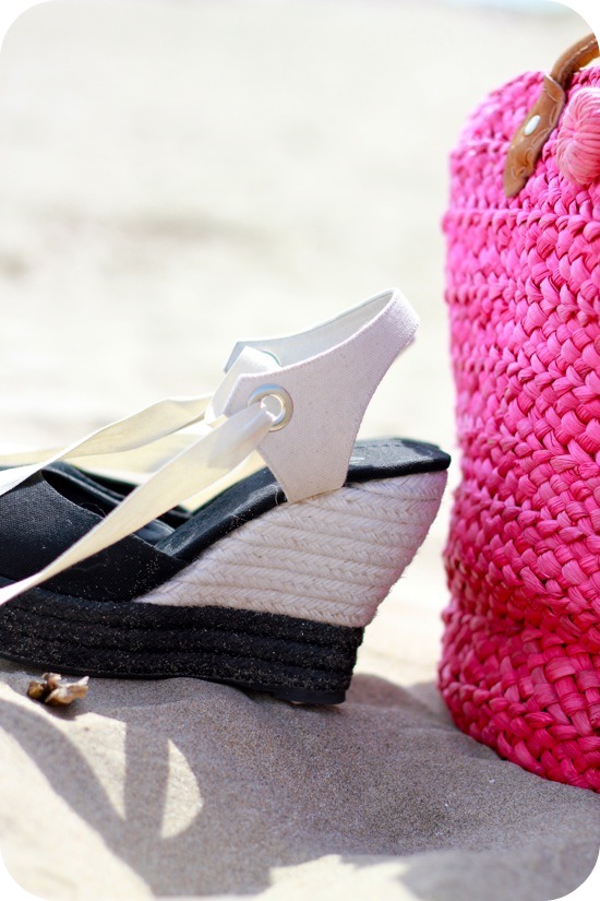 jolies chaussures !! j’aime beaucoup les compensées en magasin ces temps ci 🙂 et ce sac.. très belle couleur ! parfait pour la plage !