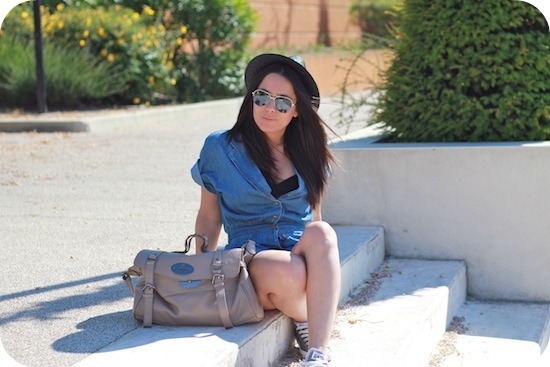 Super cool cette combi-short en jean ! Et j’ai un faible pour ton sac aussi ! 🙂