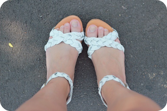 Ne me demandez pas si elles sont confortables, je ne les ai portées que le temps du trajet maison/plage, plage/photos/maison donc… je ne serai pas très objective mais j’ai peur que le cuir tressé me fasse mal au petit orteil… Affaire à suivre! Mes histoires sont tout à fait passionnantes n’est-ce pas?