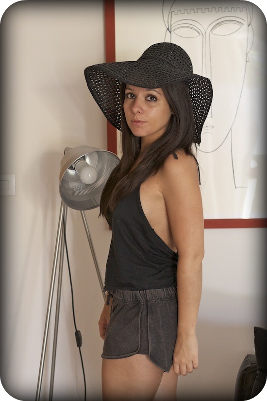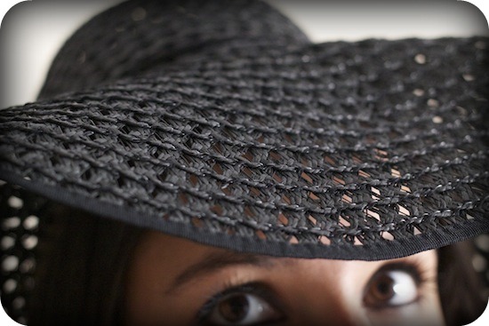 J’me sens toujours un peu quiche quand je fais des photos chez moi avec les accessoires mais bon, faut ce qu’il faut ! La capeline est bien sympa (et mise sur le devant de la tête ! hihi )