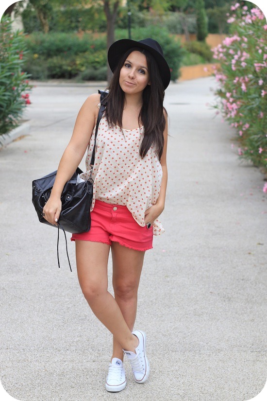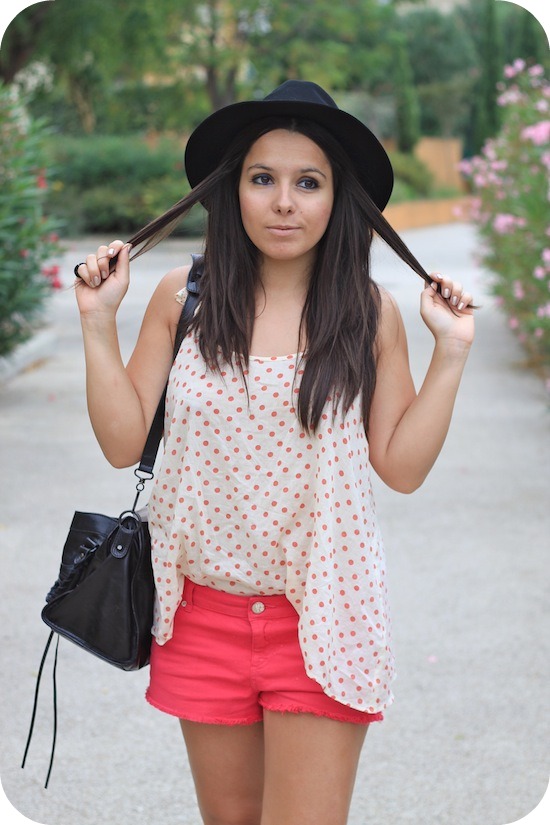 Les chapeaux te vont très bien ! J’aime beaucoup l’associations du top a pois avec le short rose , ils vont très bien ensemble !