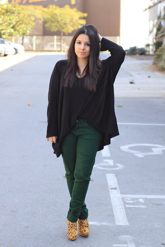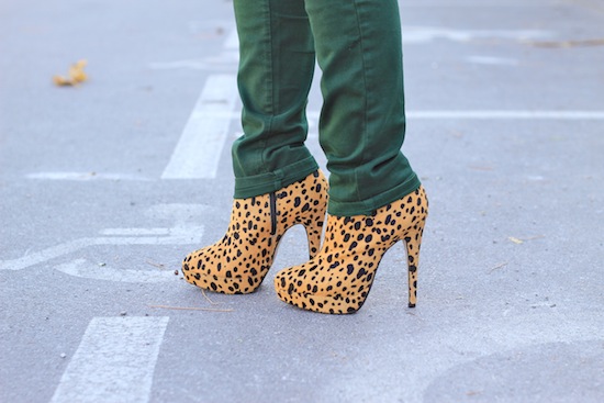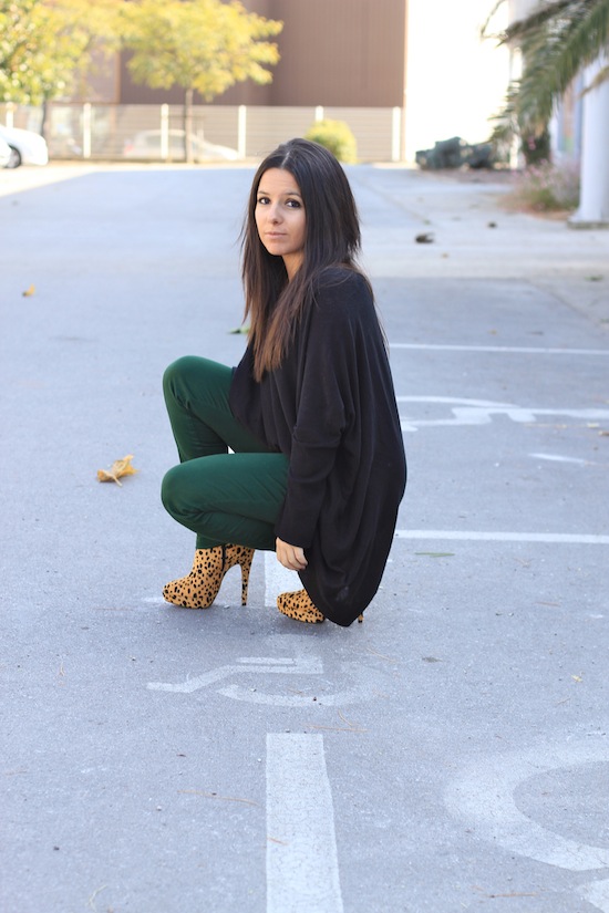 C’est vrai qu’il est sympa ce jean vert et avec les boots léopard c’est parfait 🙂