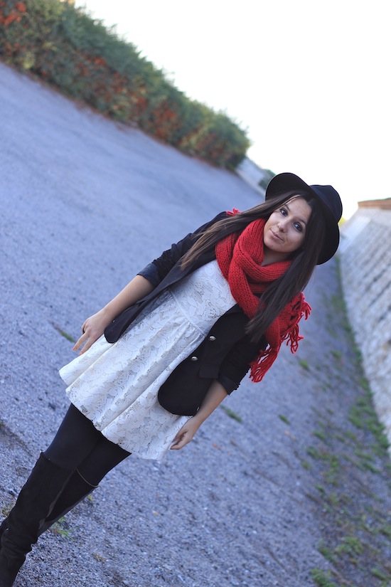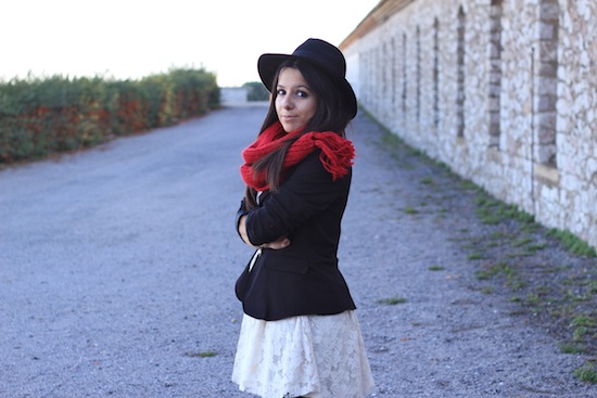 Super jolie cette tenue avec l’écharpe rouge qui fait ressortir le tout 🙂