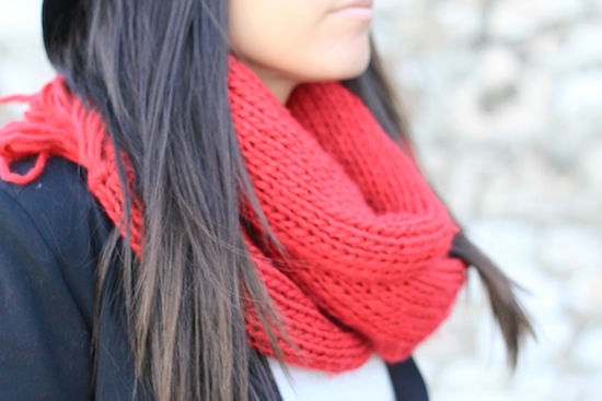 J’adore cette écharpe, le rouge bien lumineux et les grosses mailles !! Vais faire un tour chez Kiabi moi ! 🙂