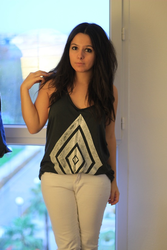 Au niveau du look rien à dire, j’adore le débardeur. Et le jean blanc j’ai jamais trouvé que ça grossissait moi, j’ai plutot l’impression que ça rend mes mollet tout fins (déjà qu’ils sont pas très gros…)