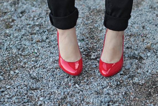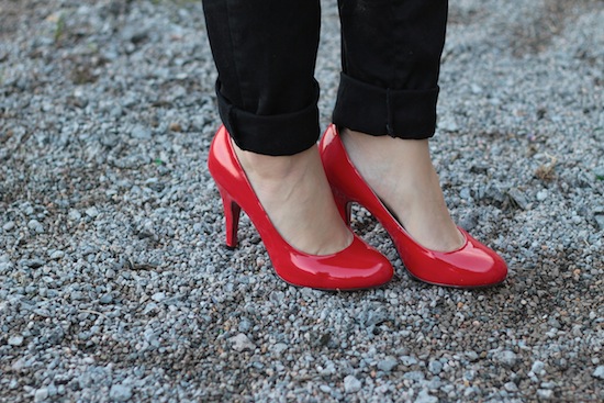 Adoable cette petite chemise coeur! J’adore les escarpins rouges!!