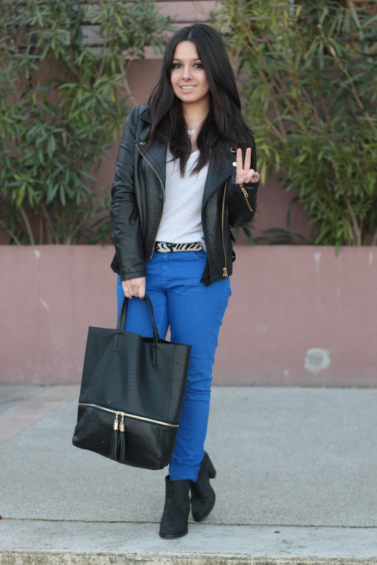 C’est vrai que ce slim bleu électrique reveille ton look 😀 Et je suis super contente que la boutique propose d’en envoyer parce que j’ai complètement craquer sur ton sac et son prix n’est pas excessif 🙂 J’ai hate d’en savoir plus ! Bonne semaine !