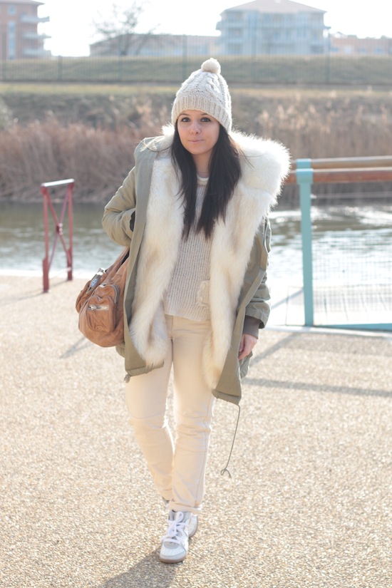 j’adore ta parka!!! j’ai les mêmes chaussures 😉 , très jolie tenue.