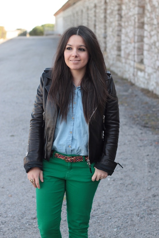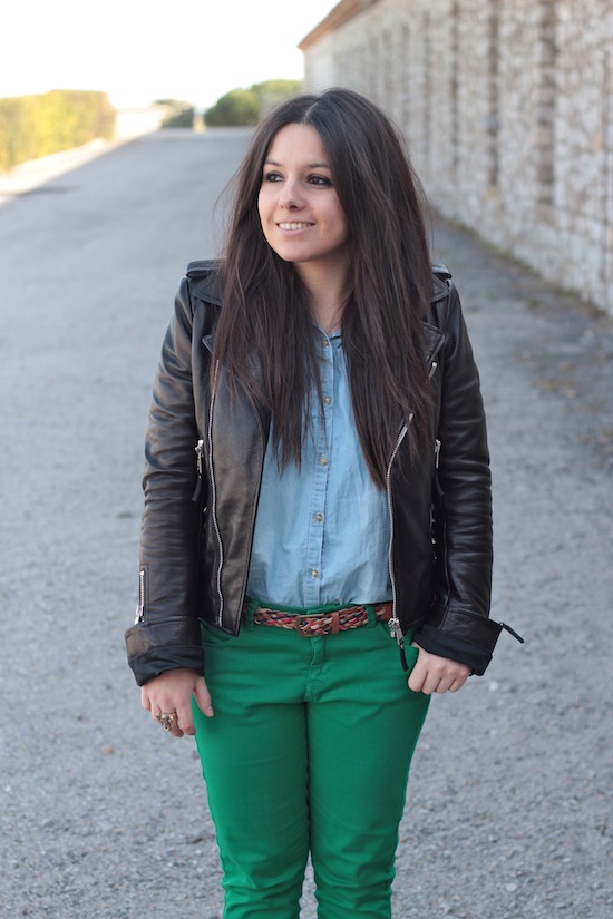 J’aime beaucoup ton perfecto juste parfait et le beau vert de ton jean.