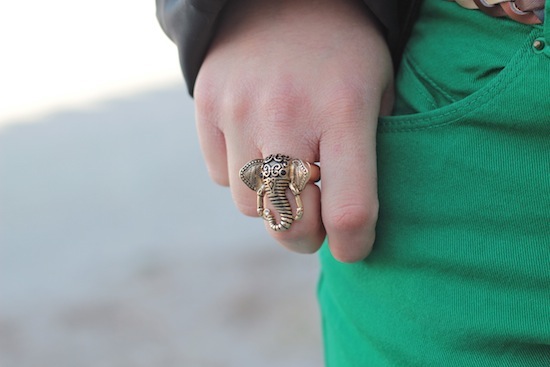 Sympa comme look avec le jean vert… J’adore la bague !!!!