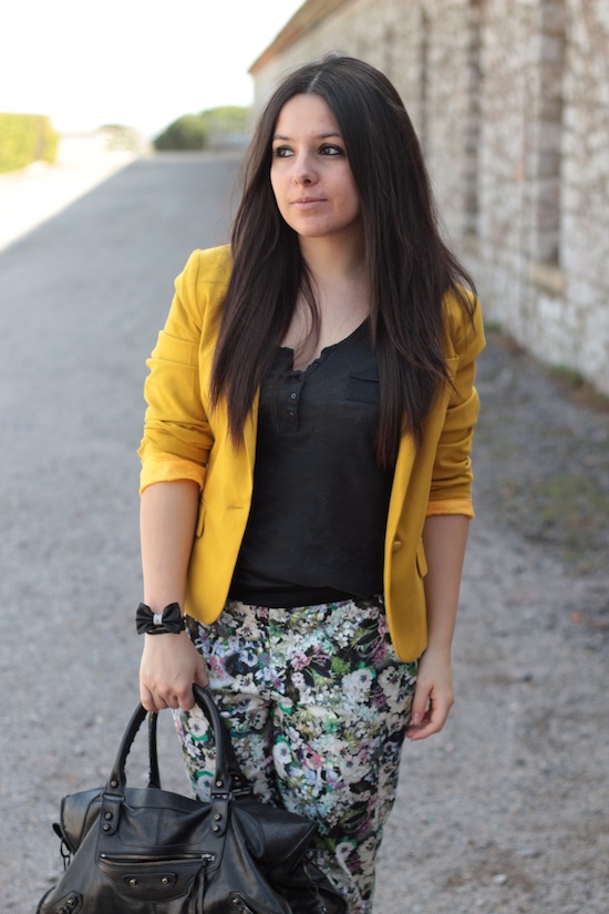 Cette tenue est vraiment top, j’aime beaucoup ton blazer jaune et je trouve qu’il rend encore mieux sur un joli pantalon fleurie! J’adhère cette tenue!