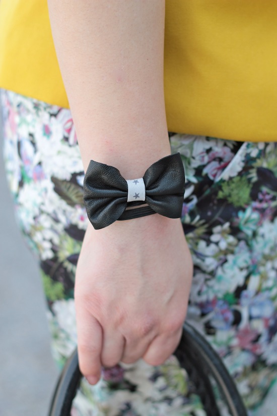 Quand au joli petit noeud que je porte autour du poignet, il s’agit à la base d’un headband Little Madame que je n’arrivais pas à placer correctement dans mes cheveux sans ressembler à la femme de Toad alors je l’ai détourné en bracelet!