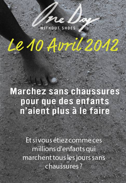 Je participe à la journée sans chaussures, mise en place par la marque Toms. Une journée sans chaussures pour pouvoir chausser les enfants qui n’en ont pas.