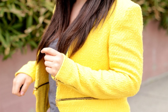 Très joli ce jaune. Belle coupe pour cette veste. J’aime bien « casser » le look « dadame » de la veste avec les Spring Court. Bien joué.