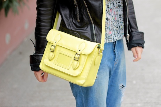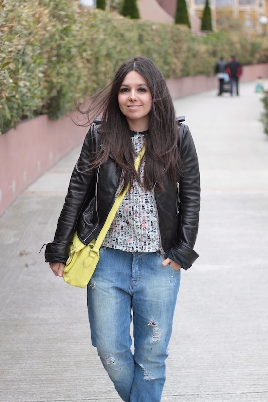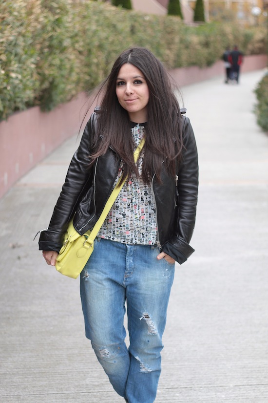 Tu portes très bien le BF jean! Je ne trouve pas que ça te grossise. Le top et le sac sont géniaux! J’aime beaucoup ce look!