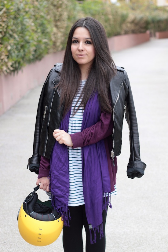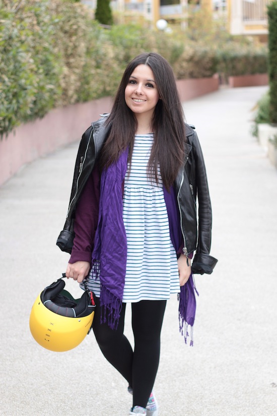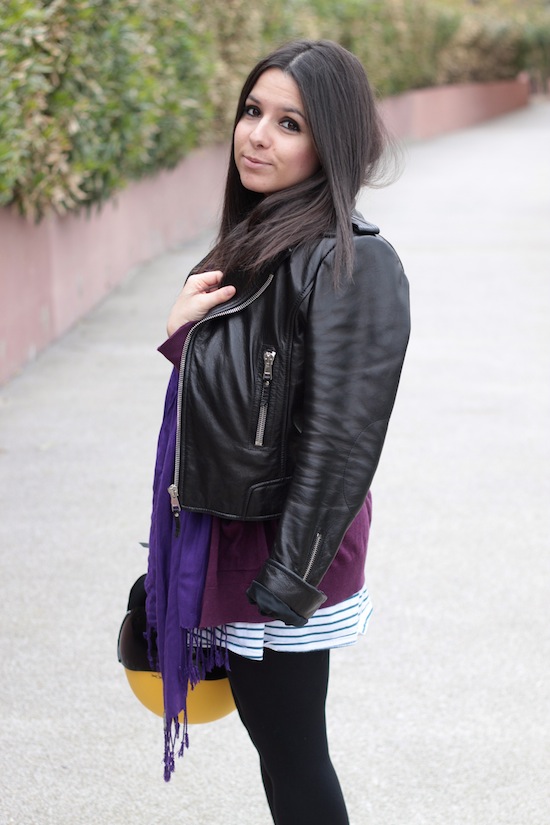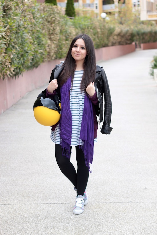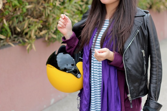 Mon casque « tête d’œuf s’accorde plutot bien avec le violet, comme quoi, le hasard fait bien les choses parfois (promis, je n’ai pas réfléchi à ça avant!) 😉