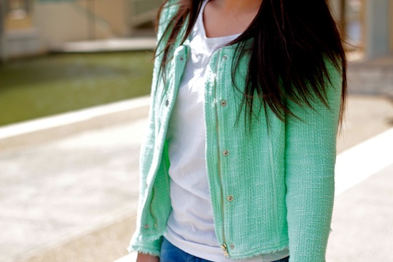 Je tente ma chance… et au passage, j’aime beaucoup ce genre de petite veste! Et le vert menthe est juste parfait sous le soleil!
