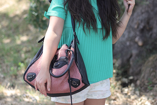 T’es vraiment mignonne dans cette tenue. Ca te change ces couleurs et c’est vraiment réussi. En tout cas le poum-poym short à fleurs et le top plissé sont ravissants 🙂