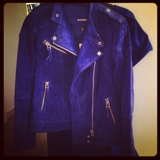 J’ai commencé à shopper de l’automne/hiver avec ce maaaaaagnifique perfecto bleu en daim, une tuerie.