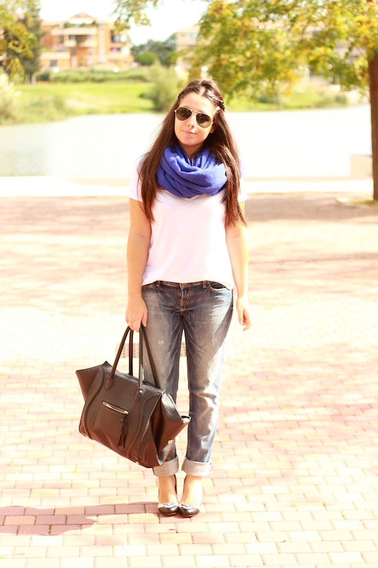 L’echarpe qui est, de loin, ma meilleure acquisition de l’automne (je fais un blocage sur le bleu, je suis au courant), ainsi que ces escarpins de la mort qui tuent (cette expression est ringarde? ah bon?), jouent leur rôle à merveille.