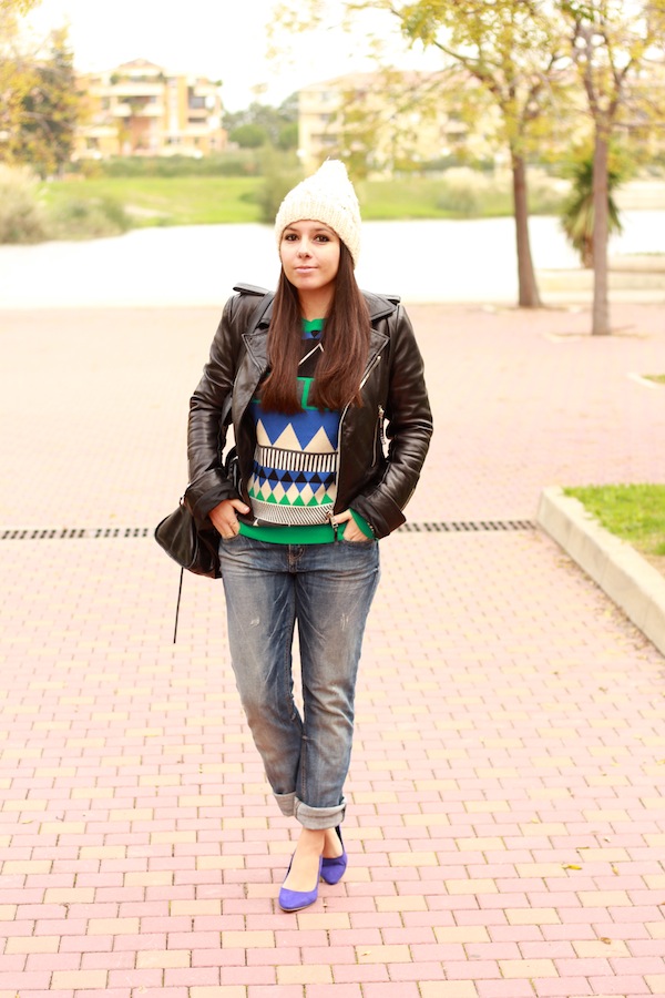 J’adore ton pull et tes escarpins. Le bonnet est la cerise sur le gateau 😉