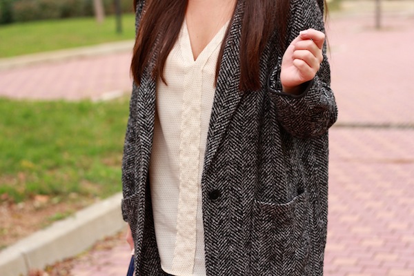 Très jolie tenue. Je me vois bien avec ce manteau Mango, j’espère qu’il est encore dispo sur l’e-shop. Je fais la même pointure que toi, je dois faire du 37.5 et c’est vraiment la galère de trouver les bonnes chaussures. Les commandes par internet et les joies des retours ^^