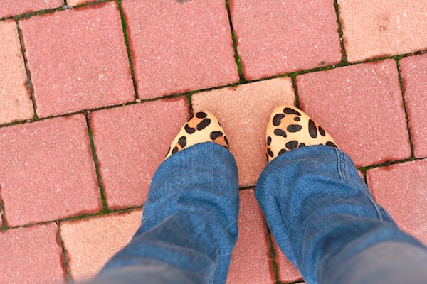 Ah dommage qu’on ne les voit pas, cachée par ton jean ! en tout cas, le motif est parfait, un léopard bien large avec des bouts ronds ! Impeccable (comme on dirait dans les années 90) ! Le futur acquéreur de cette sublime paire a de quoi se réjouir ! Pour ma part, j’ai des grands pieds d’éléphants, donc c’est râpé :S