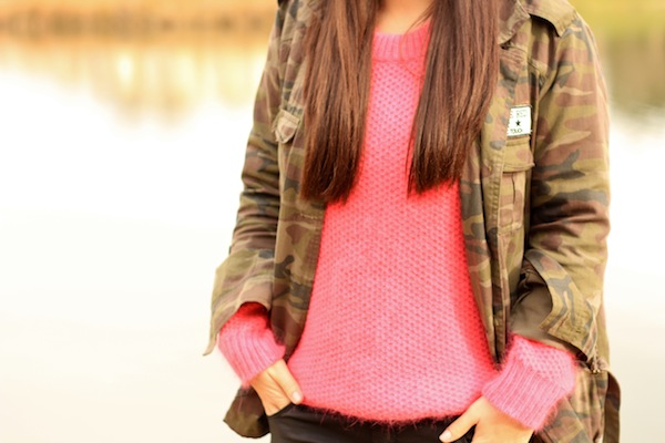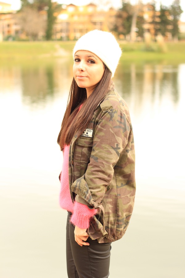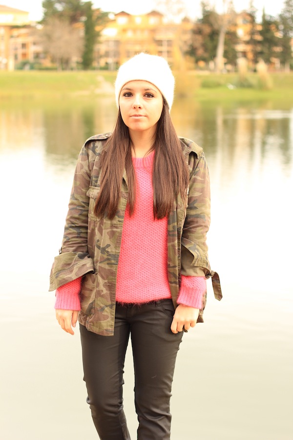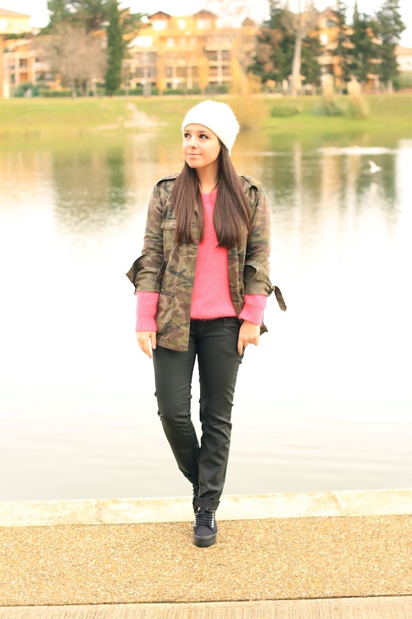 super ce look. Pas mal cette association pull rose et veste camouflage. Je n’y avais pas pensé