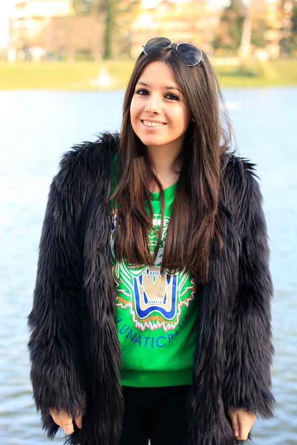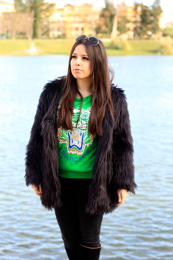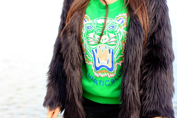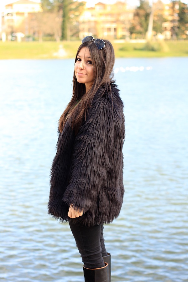 Très joli look ! Très graaouuu avec cette big fourrure et le sweat ! Tu es totalement parée pour le blizzard ! 😉