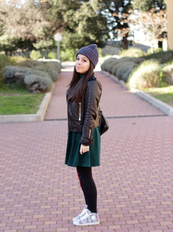Pas de prise de tête avec cette petite robe verte qui peut être portée de mille et une façon, mes Springcourt aux pieds, le bonnet de l’Homme qui me donne un air de camrbioleuse.
