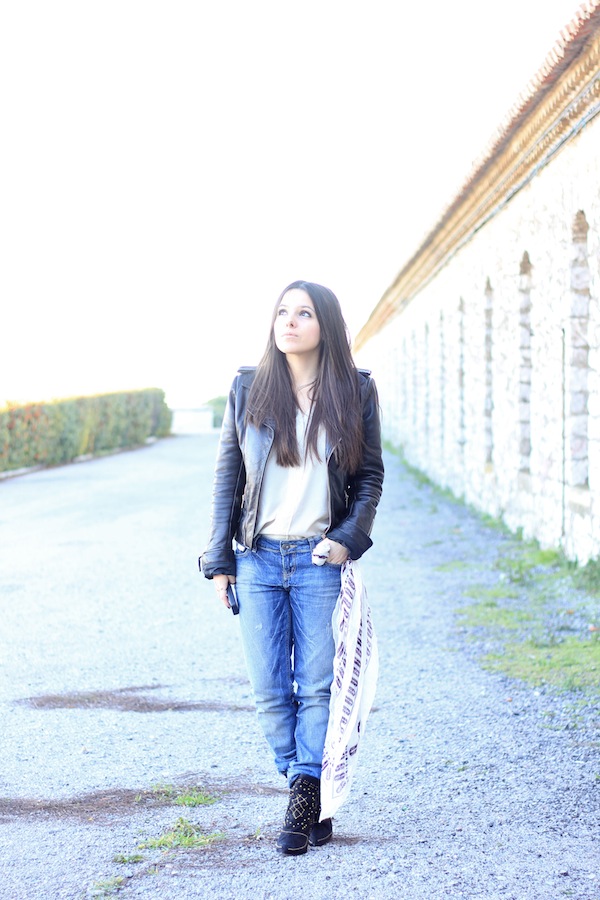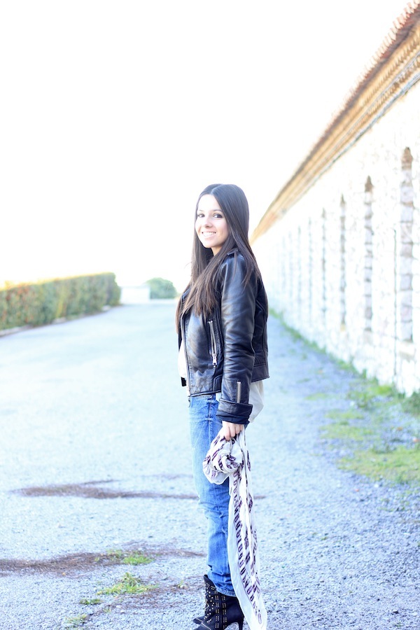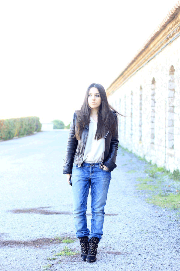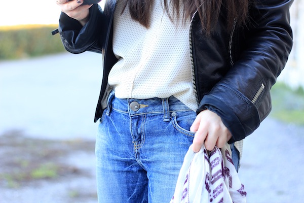Super look et jolies boots! Mais j’aime surtout beaucoup ton jean, qui te va très bien, et possède un côté résolument rock, encore davantage mis en valeur par ton perfecto.
