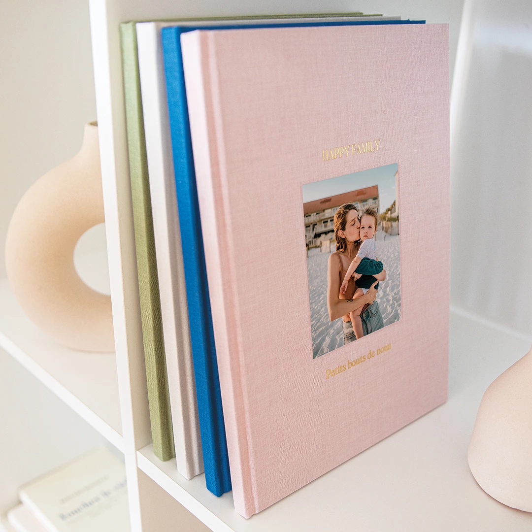 J’ai choisi de réaliser un beau livre photo en tissu, un format à la fois élégant et intemporel, parfait pour conserver des souvenirs précieux sur plusieurs années.